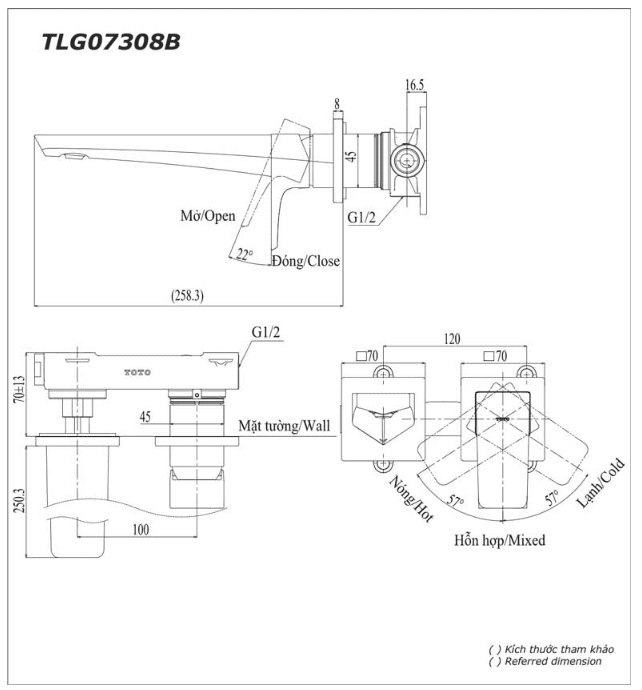 - Kích thước vòi: 258.3 (mm) (từ tâm xả nước đến tường)