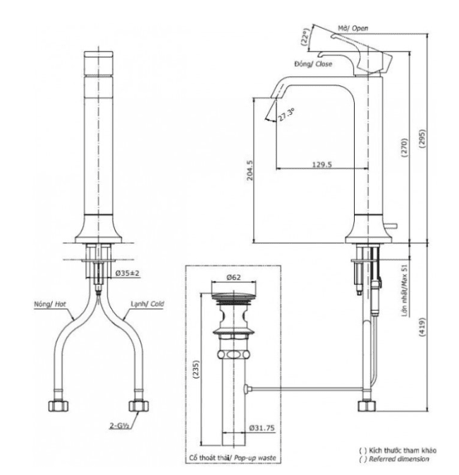 - Bao gồm bộ xả nhưng không gồm ống thải chữ P