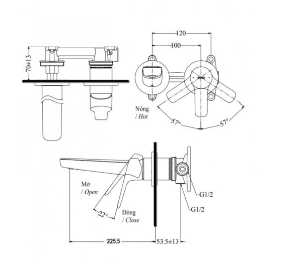 - Áp lực nước: 0.05MPa ~ 1.0MPa