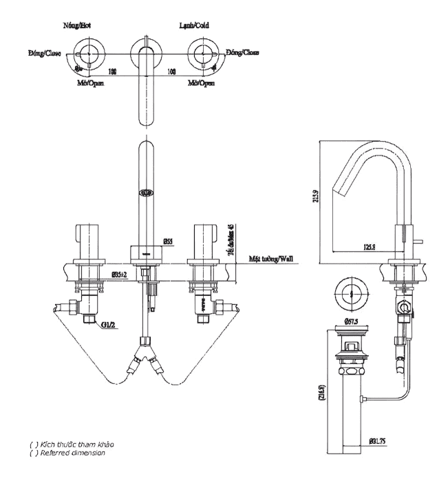 - Bao gồm bộ xả nhưng không gồm ống thải chữ P