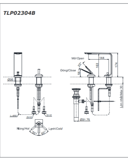 Thông số Vòi Lavabo TOTO TLP02304B#BBR Gật Gù Nóng Lạnh ZL