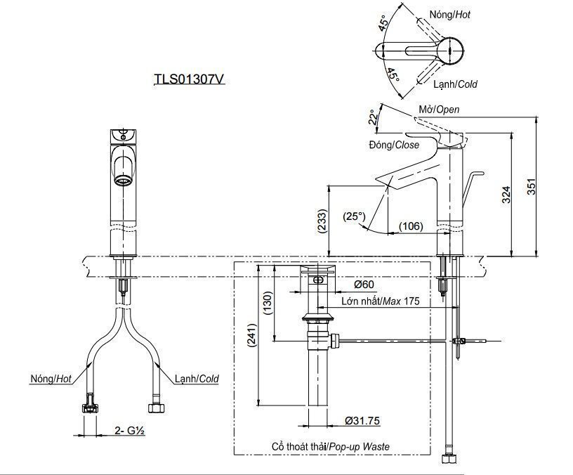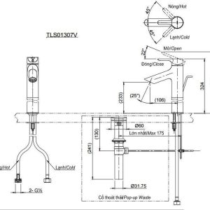 Thông Số Kỹ Thuật Của Vòi Lavabo TOTO TLS01307V Gật Gù Nóng Lạnh LB