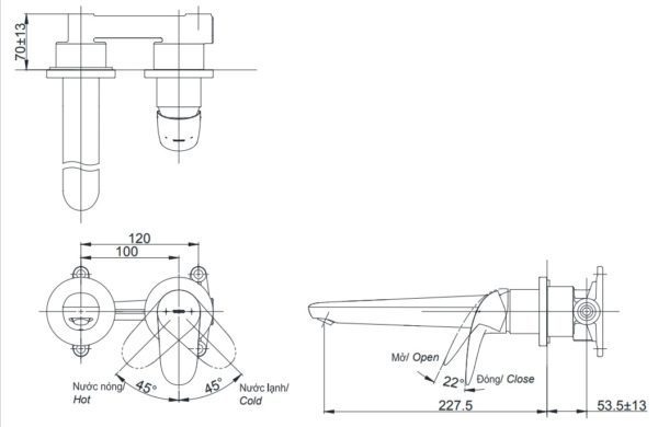 - Tên sản phẩm: Vòi chậu gật gù nóng lạnh gắn tường LC (2 lỗ)