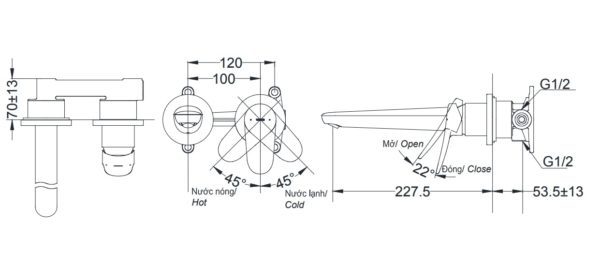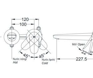 - Kích thước vòi (từ tâm xả nước đến tường): 227.5 mm