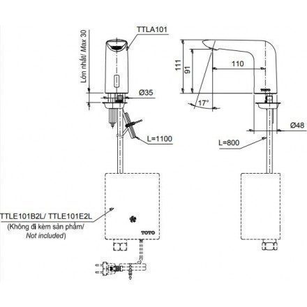 Bản vẽ kỹ thuật vòi nước TOTO TTLA101 TTLE101E2L