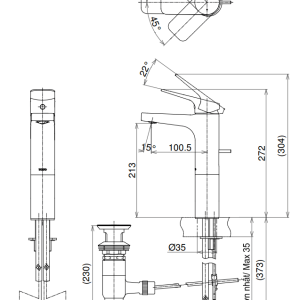 Bản vẽ kỹ thuật vòi chậu lavabo TOTO TTLR302FV-1