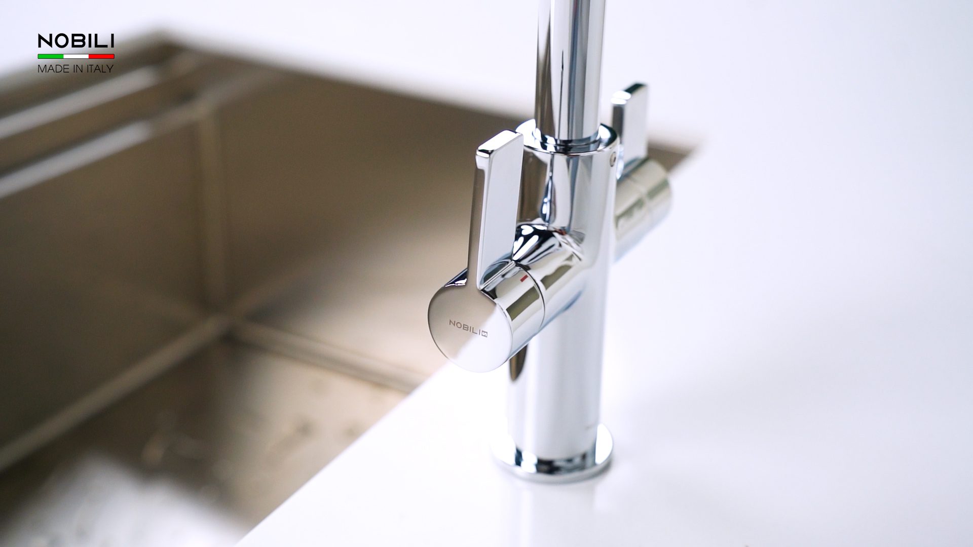 Sản phẩm vòi rửa bát nóng lạnh 3 đường nước Sora NB164 từ thương hiệu Nobili, xuất xứ 100% từ Ý, là sự kết hợp tinh tế giữa vẻ đẹp sang trọng, hiện đại và chất lượng vượt trội. Với thiết kế đơn giản nhưng thanh lịch, vòi bếp này không chỉ mang lại trải nghiệm sử dụng tuyệt vời cho người nội trợ mà còn góp phần tôn lên không gian bếp của bạn.
