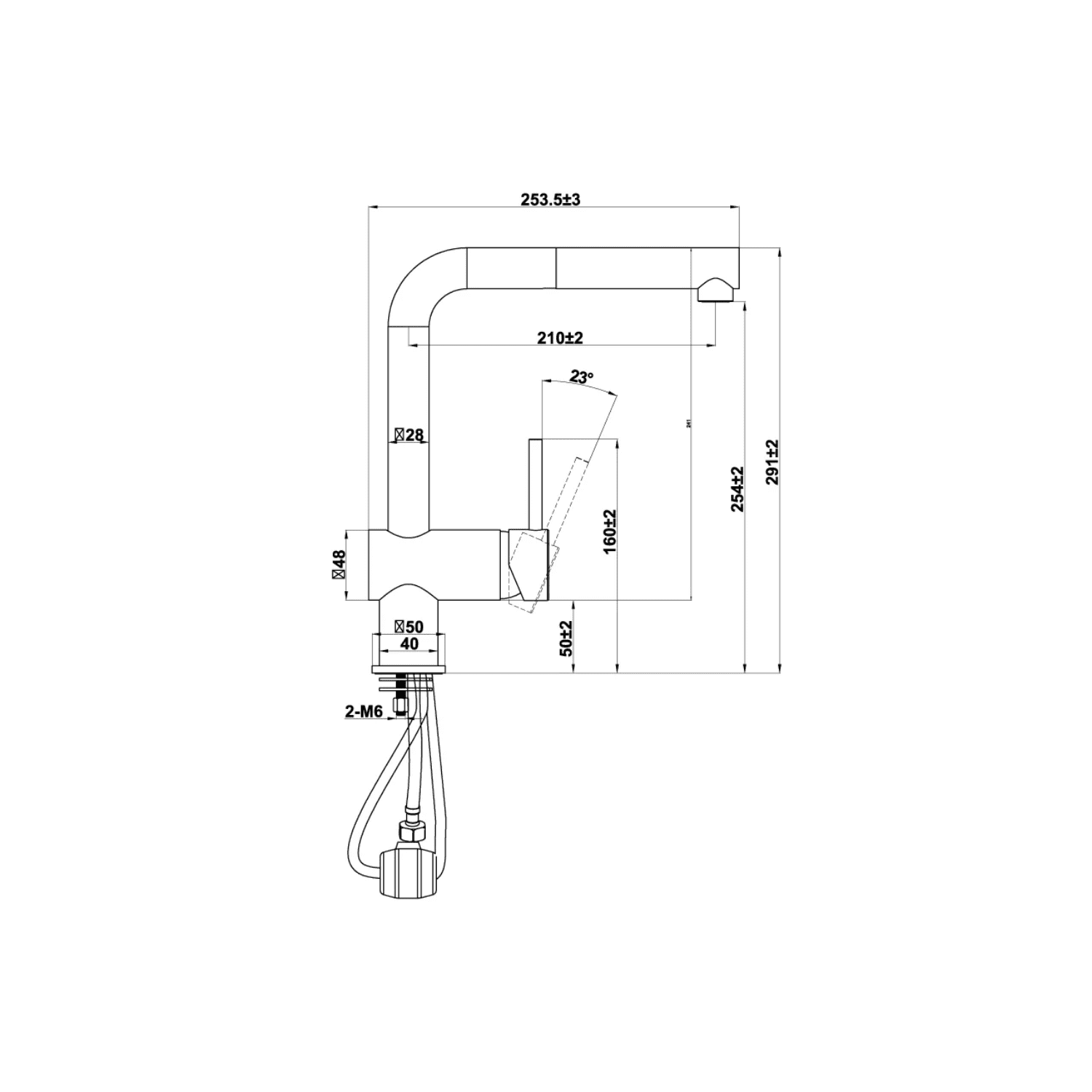 | Khoảng cách từ đầu vòi tới thân vòi | 253.5 ± 3 mm |