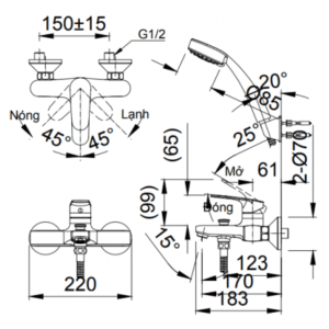 Thông Số Kỹ Thuật Của Vòi Sen Tắm INAX BFV-2003S Nóng Lạnh