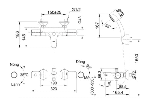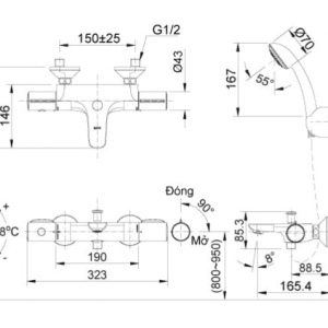 Thông Số Kỹ Thuật Của Vòi Sen Tắm INAX BFV-3413T-8C Nhiệt Độ