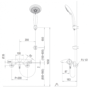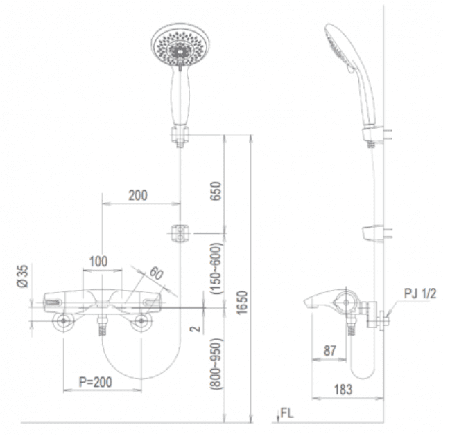 Bản vẽ kĩ thuật của Vòi Sen Tắm Nóng Lạnh INAX BFV-5103T-5C.