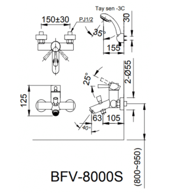 Thông Số Kỹ Thuật Của Vòi Sen Tắm INAX BFV-8000S-5C Nóng Lạnh