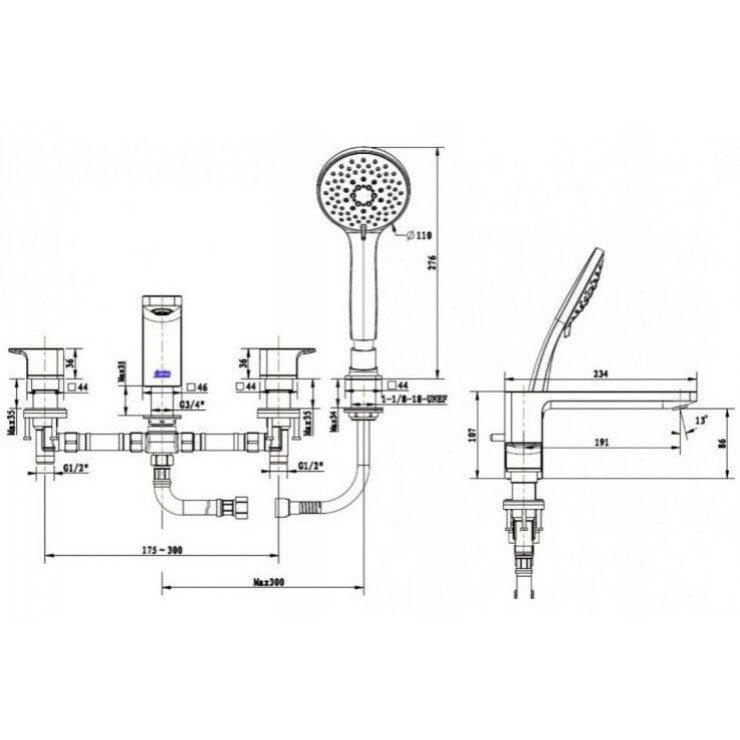 - Tên sản phẩm: Vòi xả bồn tắm 4 lỗ