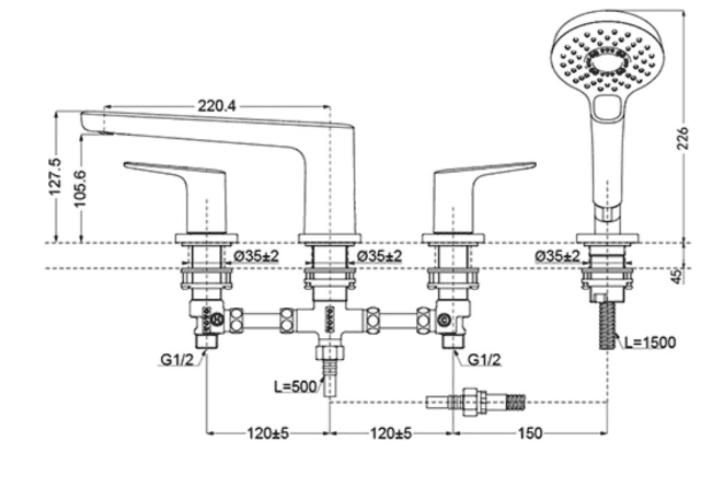 - Vòi xả bồn nóng lạnh kèm tay sen tắm GS (4 lỗ)