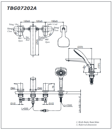 - Áp lực nước: 0.05MPa ~ 0.75MPa