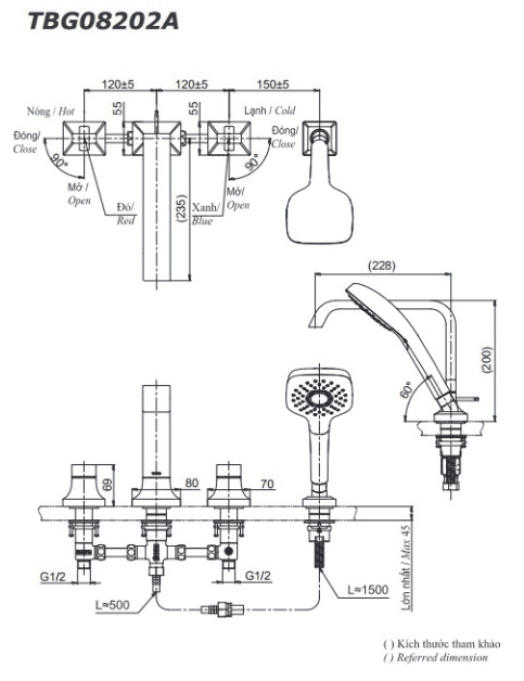 - Áp lực nước: 0.05MPa ~ 0.75MPa